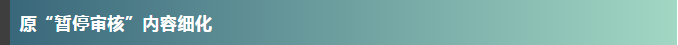 新版《指南》將原“暫停審核”細(xì)分為:暫停審核、停止審核和終止審核。