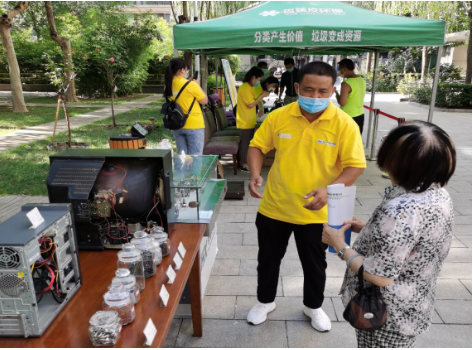 在北再生集團(tuán)的攤點,居民用廢舊電器即可換取兌換券,再憑券換取米面油等生活用品。工作人員還提供免費(fèi)回收大件垃圾服務(wù)、幫助社區(qū)清理“僵尸自行車”,贏得了居民點贊~